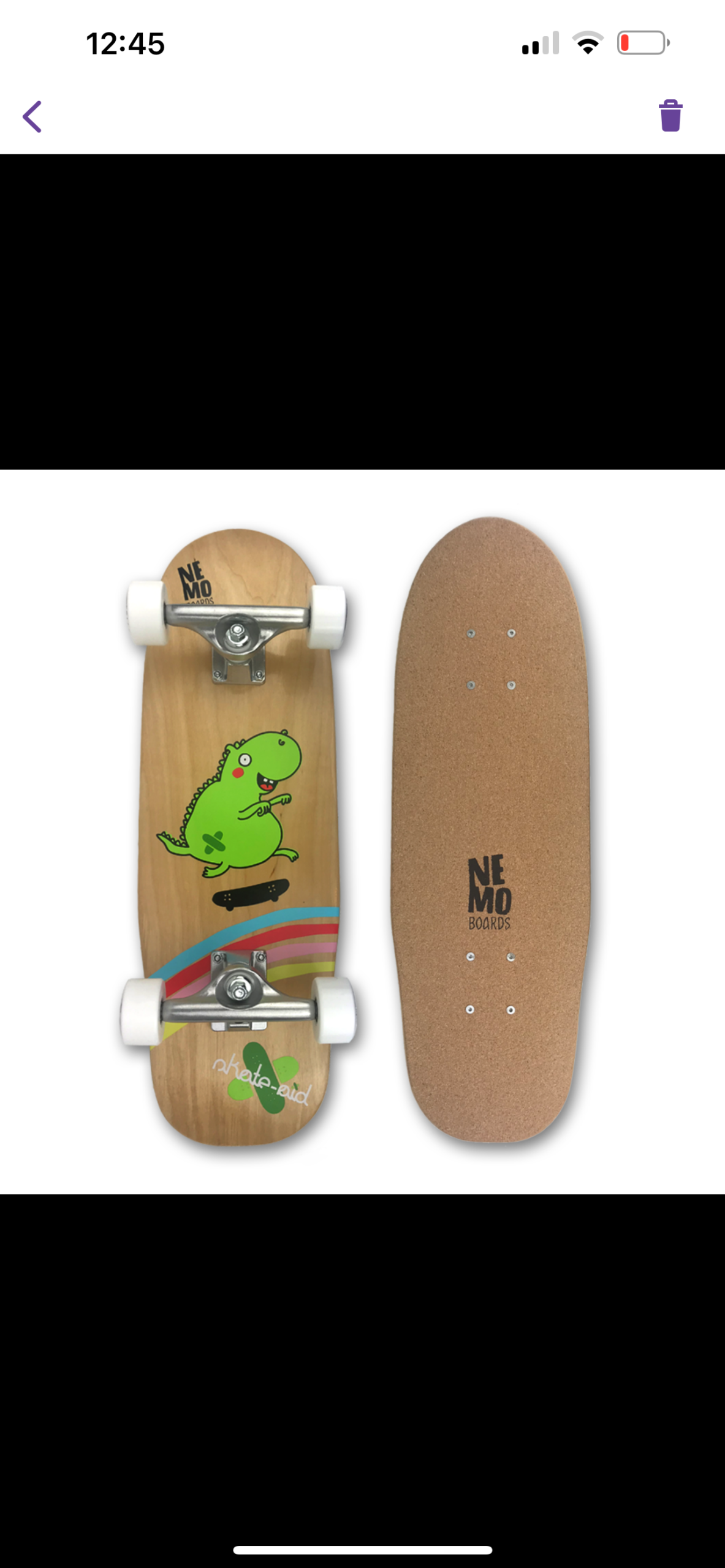 Nemo Boards Cork Softgrip Kids Skateboard Mari Dino – 24.75″